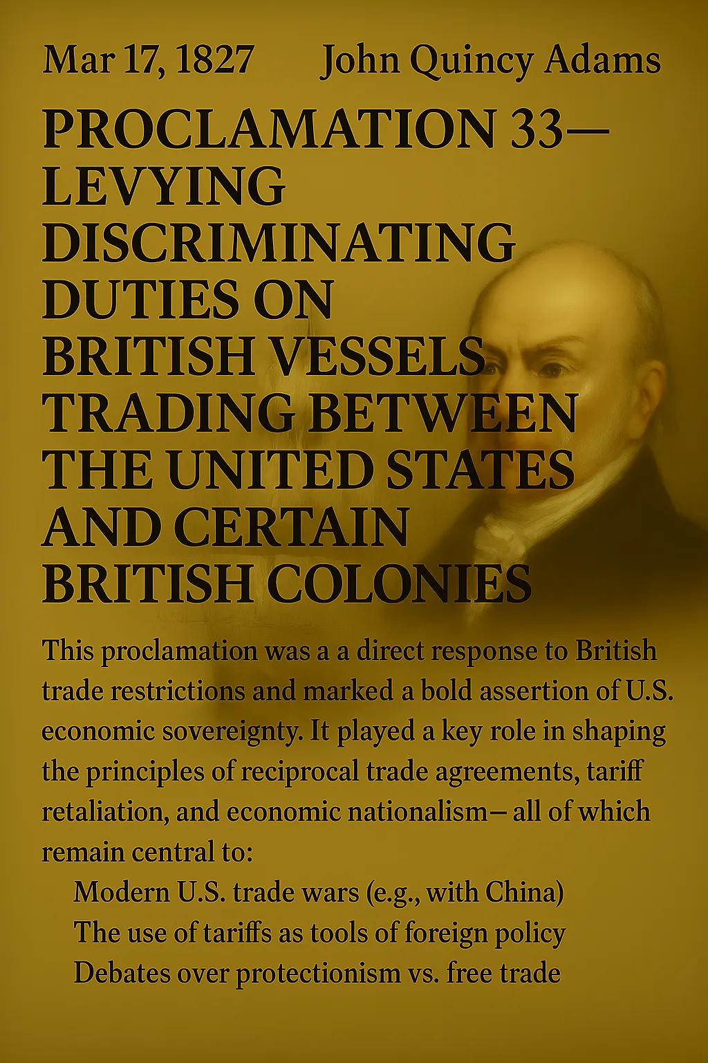 Proclamations: 25+ (including Monroe Doctrine era trade/tariff policies)