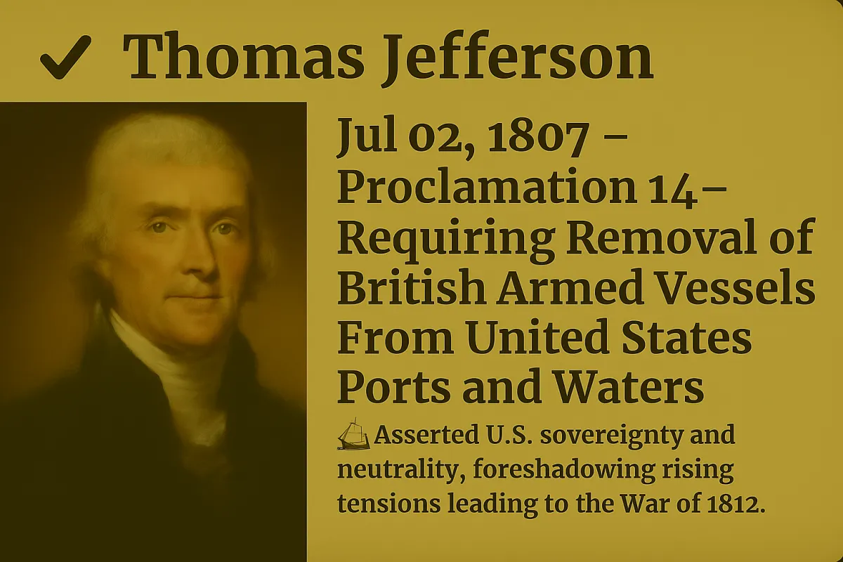 Proclamations: 10+ (including Embargo Acts and foreign relations)