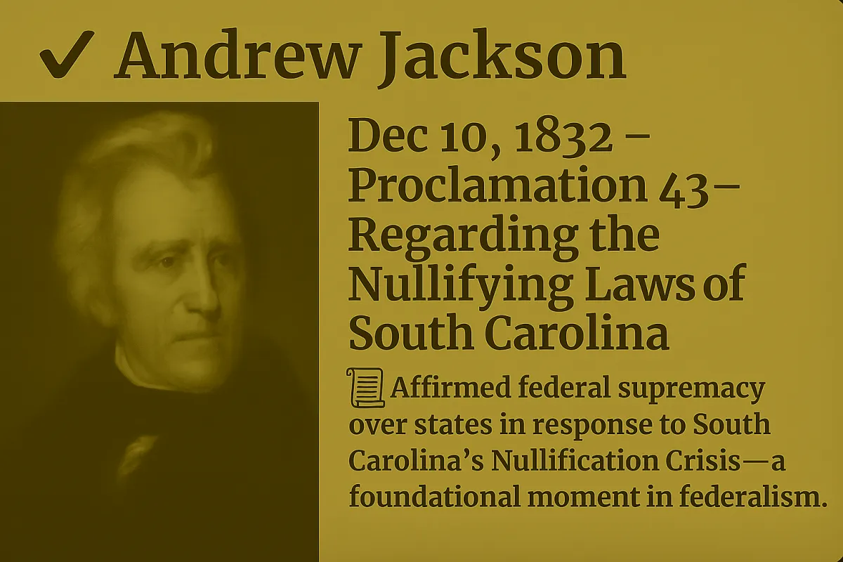 Proclamation 43—Regarding the Nullifying Laws of South Carolina
